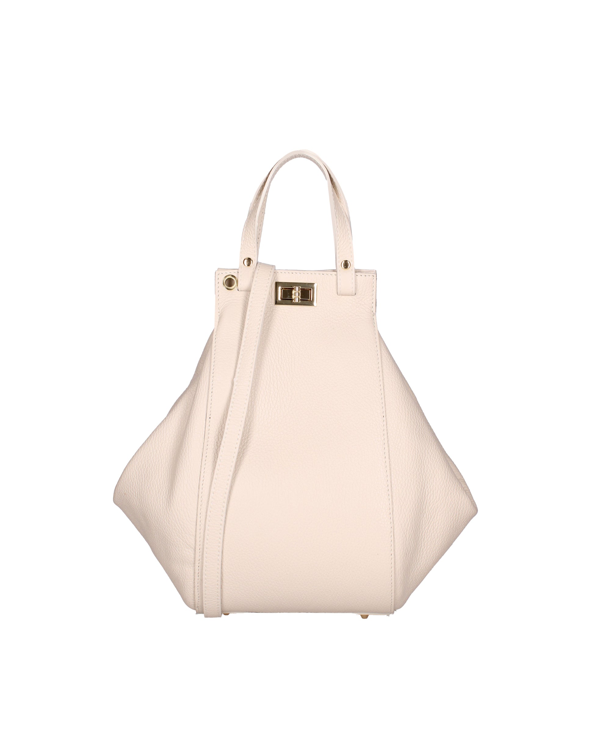 Women's handbag. The closure is with zip. The internal pockets are one with zip. The external pockets are absent. The shoulder strap is adjustable and removable in leather. The handle is in leather. The internal compartments are one. The external material is real dollar leather. Internally it is lined in 70% cotton - 30% polyester fabric. Measurements: . Made in Italy
