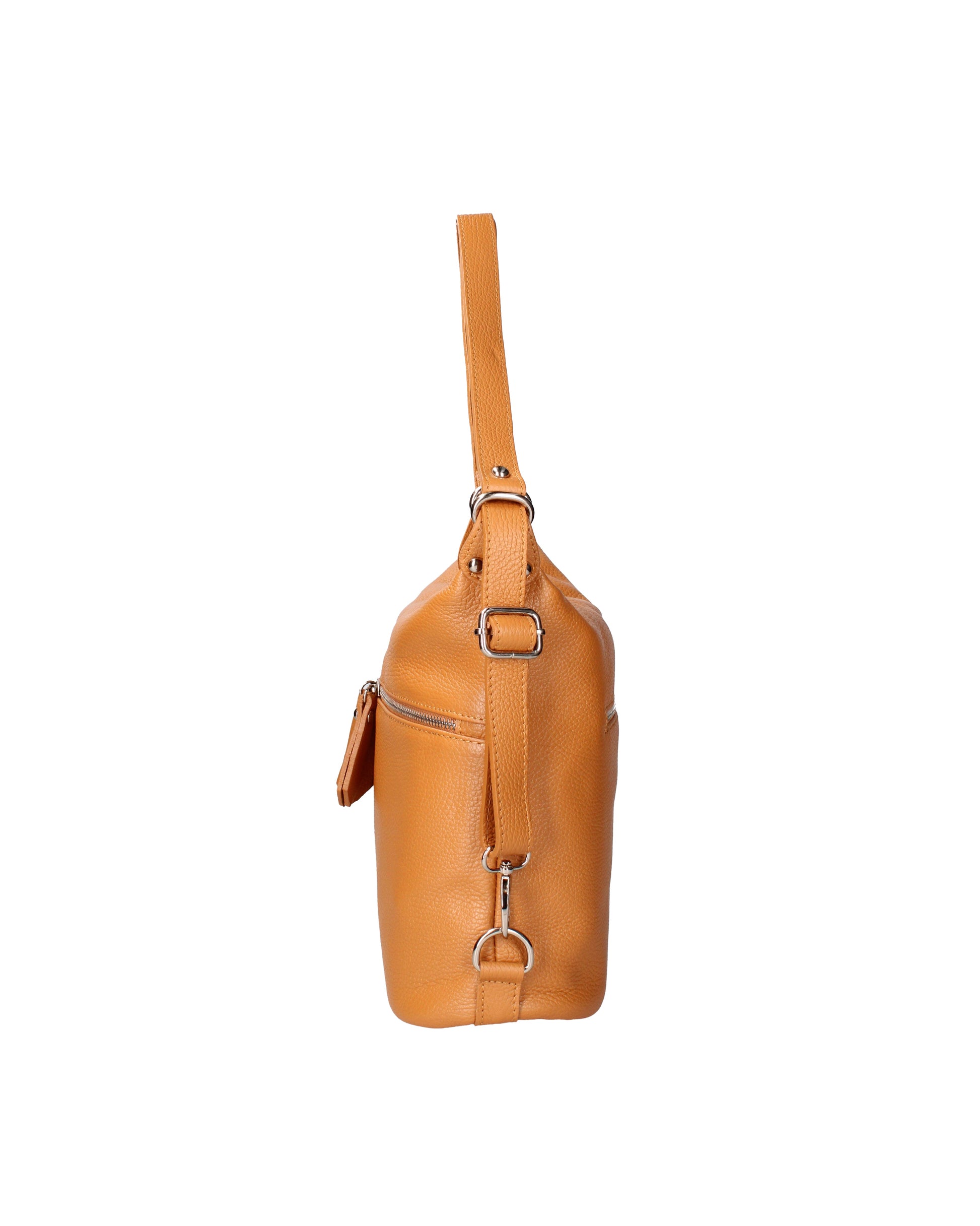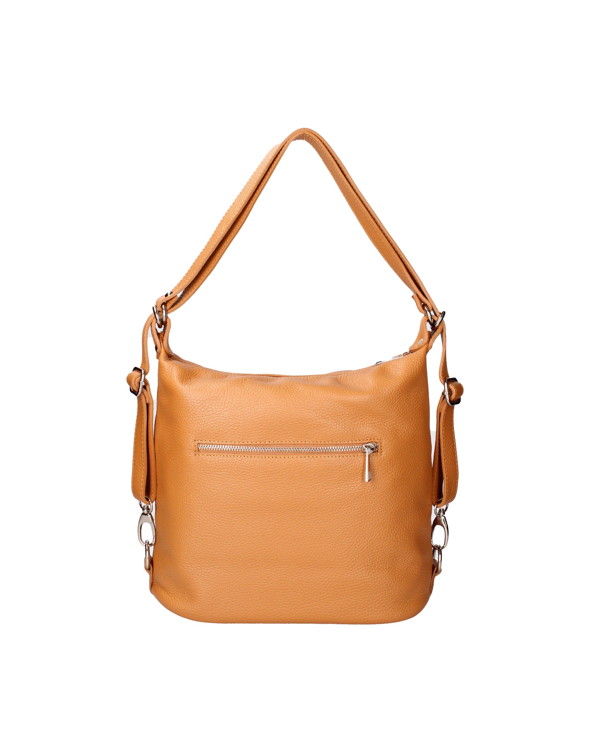 Convertible shoulder bag into a women's backpack. The closure is with zip. The internal pockets are one with zip and two open. The external pockets are one front with zip and one back with zip. The shoulder strap is adjustable in leather. The handle is adjustable in leather. The internal compartments are one. The external material is real dollar leather. Internally it is lined in 70% cotton - 30% polyester fabric. Measurements: . Made in Italy