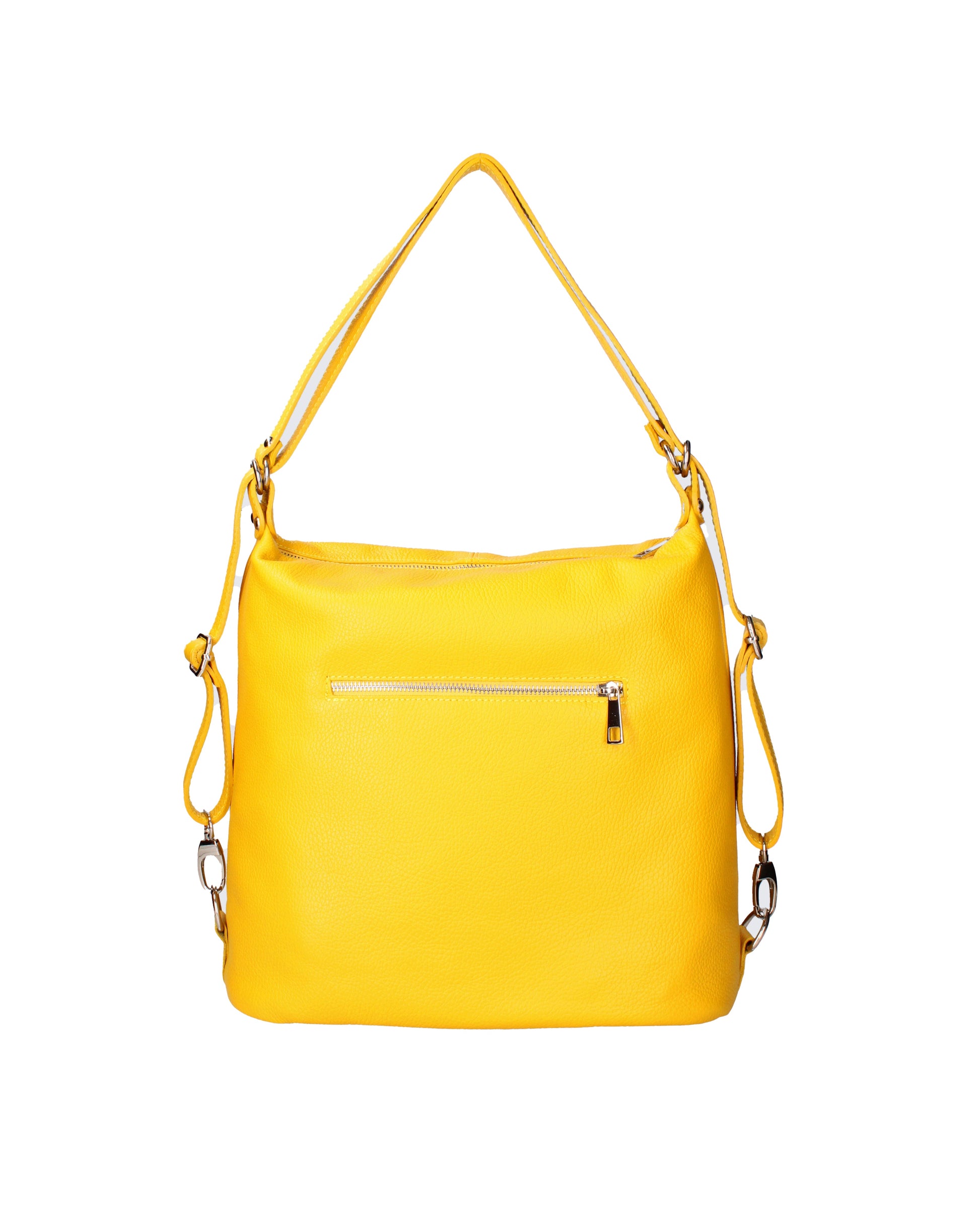Borsa a spalla convertibile in zaino da donna. La chiusura è con zip. Le tasche interne sono una con zip e due aperte. Le tasche esterne sono due anteriori con zip e due posteriori con zip. La tracolla è regolabile in pelle . Il manico è regolabile in pelle . Gli scomparti interni sono uno. Il materiale esterno è vera pelle dollaro. Internamente è foderato in tessuto 70% cotone - 30% poliestere. Misure: . Made in Italy